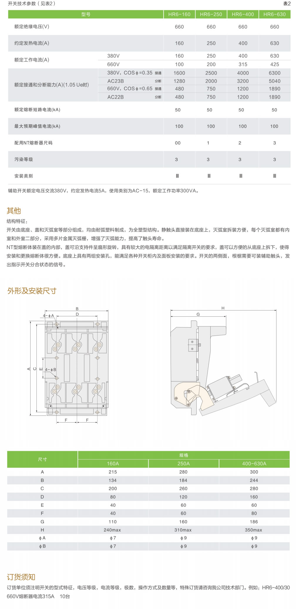 Hr6 series fuse type disconnector is mainly used in distribution circuit and motor circuit with rated voltage of 380V and 660V (45 ~ 62Hz) and heating current up to 630A. It is used as power switch, disconnector, emergency switch and circuit protection, but it is generally not used to directly open and close a single motor.