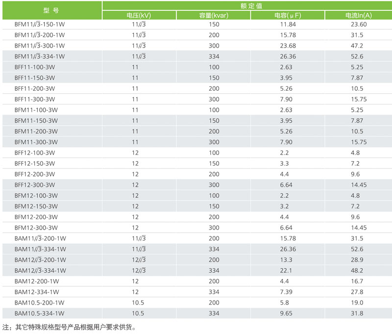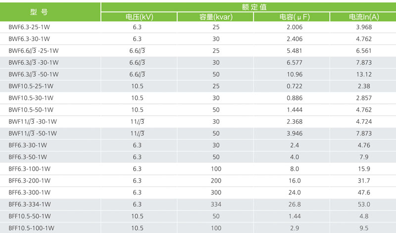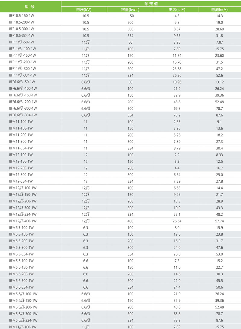 2、額定容量:30-334kvar,其它電壓等級和容量可特殊定貨。