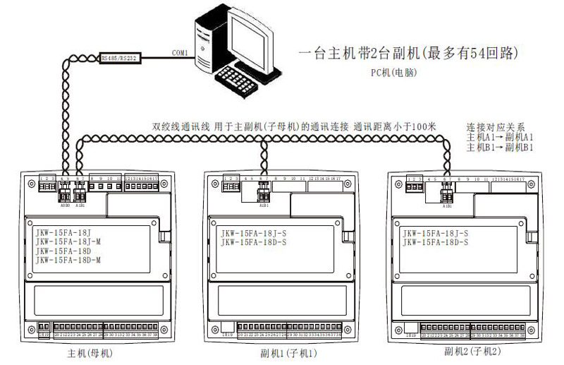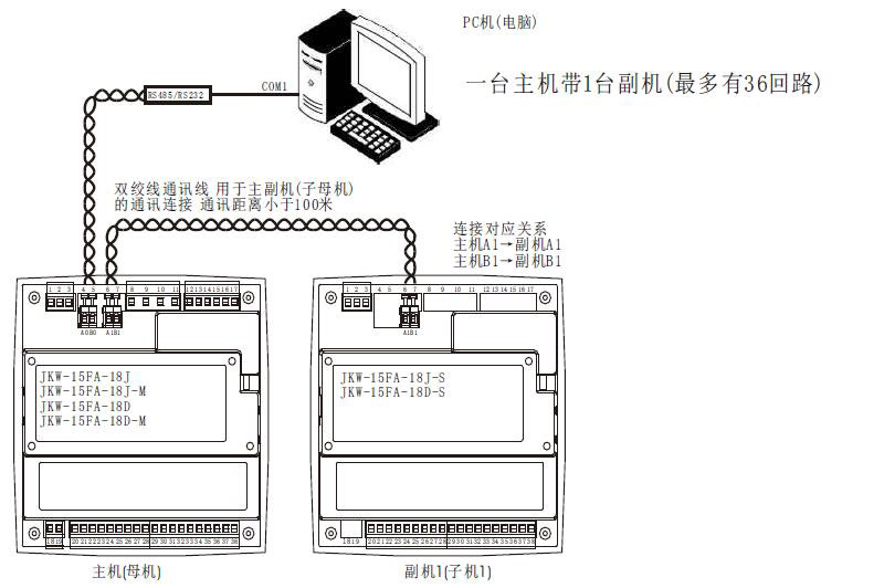 四、JKW-15FA型控制器與上位機及副機(子機)通訊連接拓撲圖