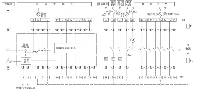 本接線(xiàn)圖僅適用于L、M型控制器及四常開(kāi)四常閉觸頭,