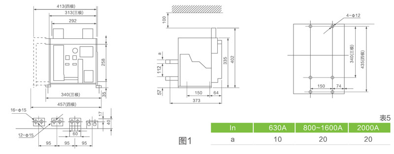 ZUW1-2000固定式斷路器安裝尺寸,外形尺寸(見(jiàn)圖1和表5)