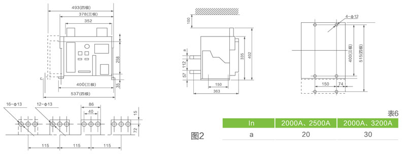 ZUW1-3200固定式斷路器安裝尺寸,外形尺寸(見(jiàn)圖2和表6)