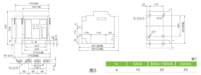 ZUW1-2000抽屜式斷路器安裝尺寸,外形尺寸(見(jiàn)圖3和表7)