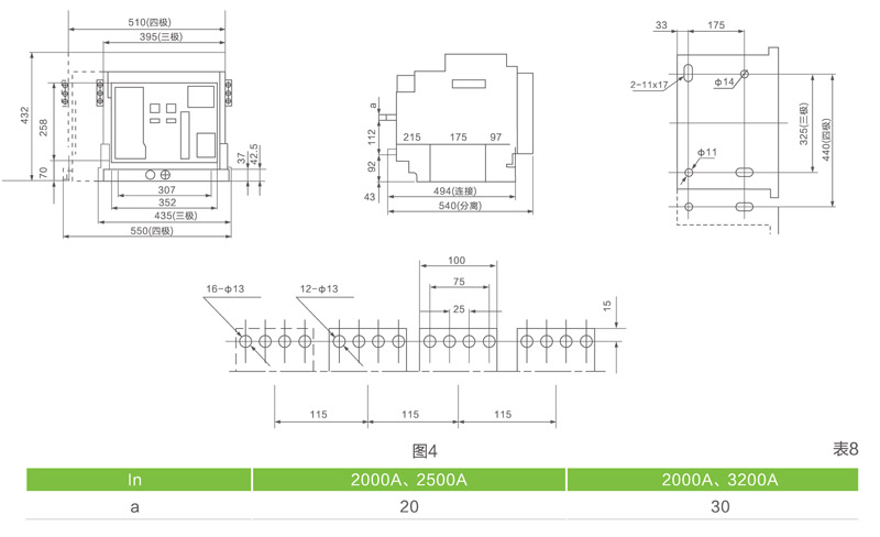ZUW1-3200抽屜式斷路器安裝尺寸,外形尺寸(見(jiàn)圖4和表8)