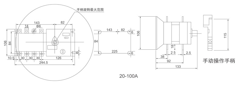 | 100A/4 | 247 | 244 | 106 | 105 | 134 | 133 | 115 | 225 | 84 | 6 | 82 | 30 | 14 | 18 | 2.5 | 105 | 126 | 6 | 38 | 92 |