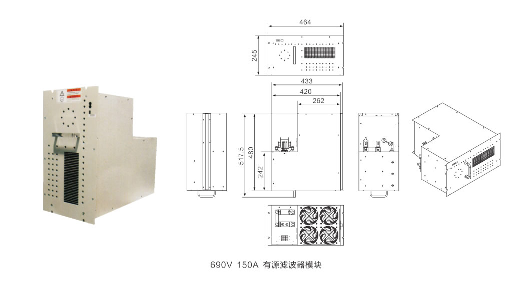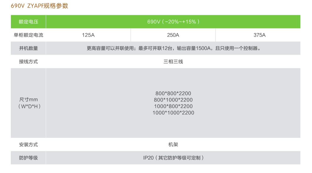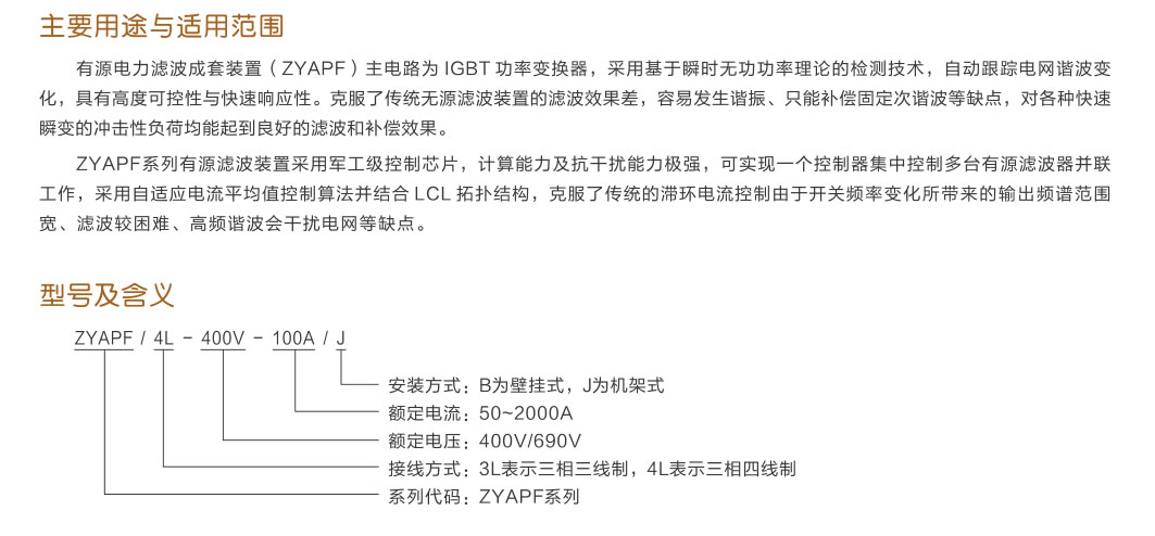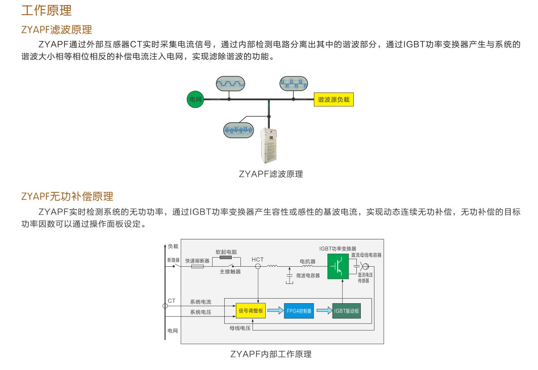 有源電力濾波成套裝置主電路為IGBT功率變換器,采用瞬時(shí)無(wú)功功率理論的檢測技術(shù),自動(dòng)跟蹤電網(wǎng)諧波變化,具有高度可控性與快速響應性?朔藗鹘y無(wú)源濾波裝置的濾波效果差,容易發(fā)生諧振、只能補償固定次諧波等缺點(diǎn),對各種快速瞬變的沖擊性負荷均能起到良好的濾波和補償效果。
