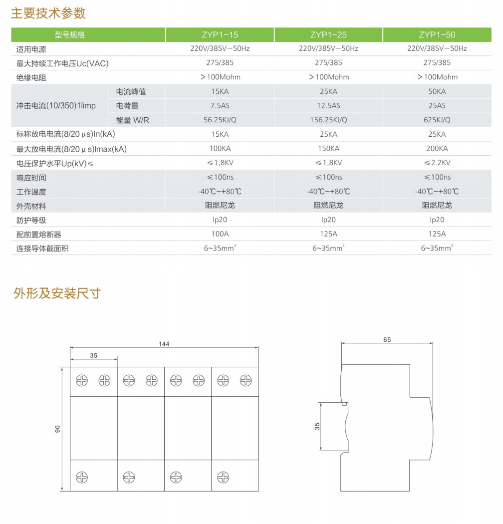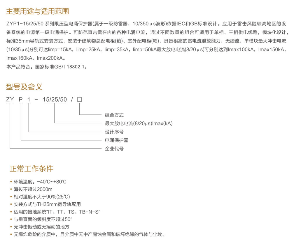 ZYP1-15/25/50 電涌保護器(一級)