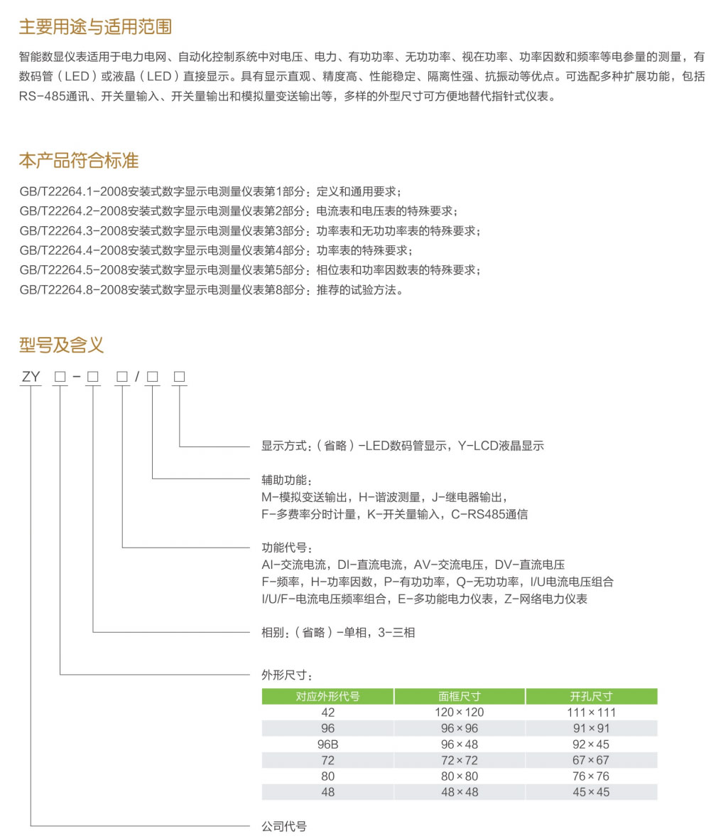 智能數顯儀表適用于電力電網(wǎng)、自動(dòng)化控制系統中對電壓、電力、有功功率、無(wú)功功率、視在功率、功率因數和頻率等電參量的測量,有數碼管(LED)或液晶(LED)直接顯示。具有顯示直觀(guān)、精度高、性能穩定、隔離性強、抗振動(dòng)等優(yōu)點(diǎn)?蛇x配多種擴展功能,包括RS-485通訊、開(kāi)關(guān)量輸入、開(kāi)關(guān)量輸出和模擬量變送輸出等,多樣的外型尺寸可方便地替代指針式儀表。