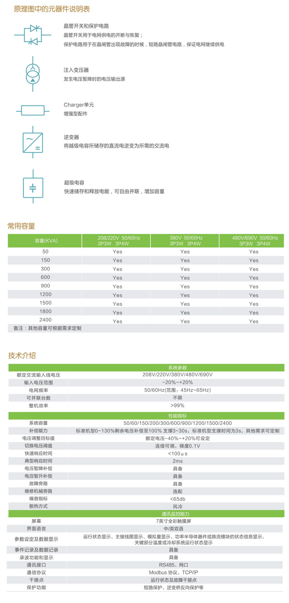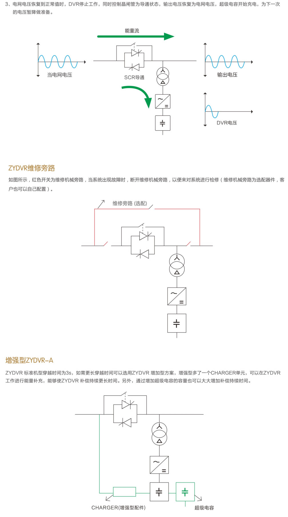 ZYDVR實(shí)時(shí)控制動(dòng)態(tài)電壓調節器以超級電容器、鋰電子電池等作為儲能元件,采用先進(jìn)的電能電子變換技術(shù)和數字控制技術(shù),提供后背式短時(shí)能量存儲解決方案,有效治理電壓暫降、電壓暫升、短時(shí)中斷等問(wèn)題,具有穩定性強、可靠性好、效率高等特點(diǎn)。